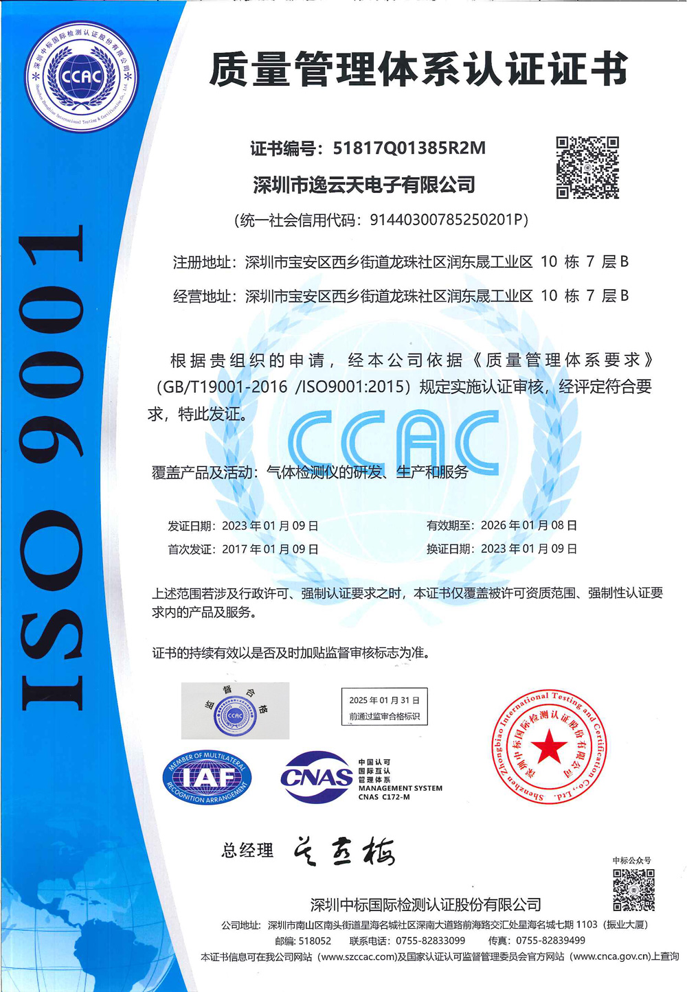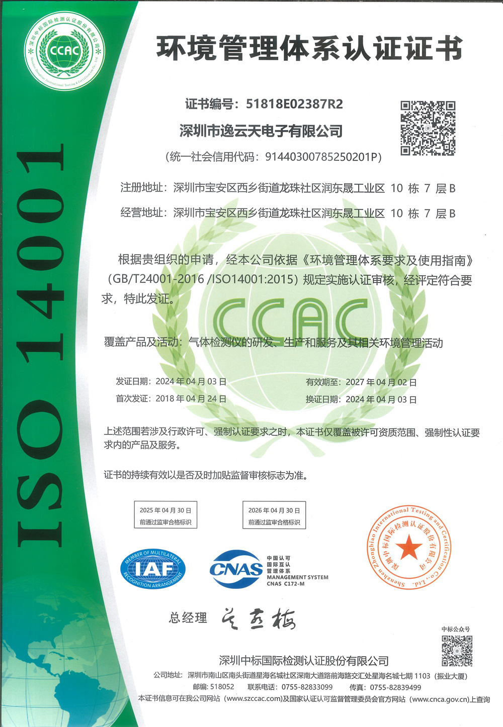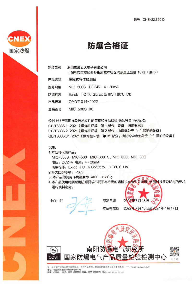 深圳市逸云天電子有限公司成立于2006年初,是集設(shè)計、研發(fā)、生產(chǎn)、銷售于一體的國家高新技術(shù)企業(yè)??商峁┯卸居泻Α⒁兹家妆瑲怏w檢測報警儀、氣體分析儀、氣體在線監(jiān)測預(yù)處理系統(tǒng)、VOCs在線監(jiān)測系統(tǒng)、微型空氣監(jiān)測站、惡臭在線監(jiān)測系統(tǒng)、差分紫外光譜氣體分析儀、激光氣體分析儀、環(huán)保安監(jiān)氣體監(jiān)測云平臺等產(chǎn)品。逸云天已通過ISO9001質(zhì)量管理體系認(rèn)證、IS014001環(huán)境管理體系認(rèn)證、ISO45001職業(yè)健康安全管理體系認(rèn)證、CCEP中國環(huán)保產(chǎn)品認(rèn)證;并取得相應(yīng)產(chǎn)品防爆合格證、CPA型式批準(zhǔn)證書、消防產(chǎn)品認(rèn)證證書、外觀專利證書、軟件著作權(quán)登記證書等。本公司產(chǎn)品已經(jīng)在石油、化工、燃?xì)廨斉?、倉儲、市政燃?xì)?、消防、環(huán)保、冶金、生化醫(yī)藥、能源電力等行業(yè)得到了廣泛的應(yīng)用,并得到廣大客戶的一致認(rèn)可。
