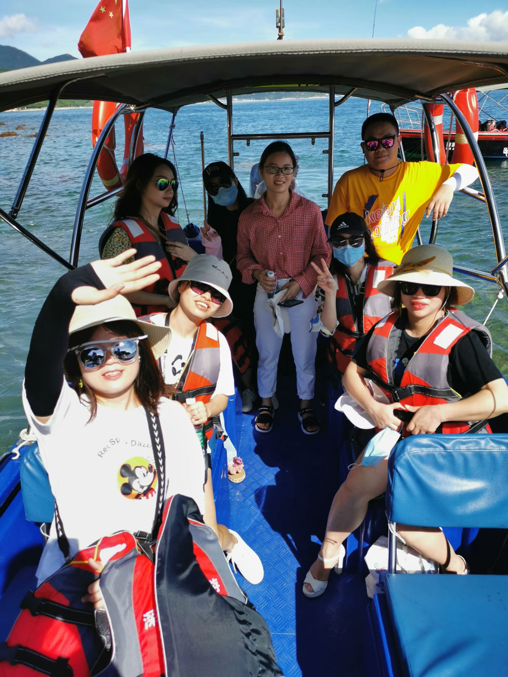 較場(chǎng)尾海灘平緩狹長(zhǎng),靠岸處沙子細(xì)軟,海水較淺非常適合游泳,同時(shí)這里集聚著一批熱愛(ài)海上運(yùn)動(dòng)的年輕人在此揚(yáng)帆起航,玩轉(zhuǎn)各種海上運(yùn)動(dòng)。為了體驗(yàn)一把海上活動(dòng),第二天一早,逸云天小伙伴們就乘坐快艇出海,體驗(yàn)海上風(fēng)馳電掣的快感,還可以自由摸螺、捉蟹、捉海參、觀海膽,較場(chǎng)尾海灘的美景盡收眼底。