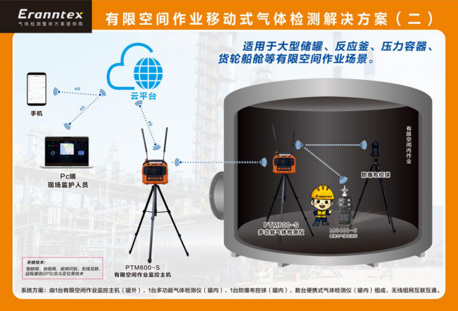針對大型儲罐、反應(yīng)釜、貨輪船艙等有限空間的高風(fēng)險作業(yè)場景,逸云天打造了集成多項(xiàng)前沿技術(shù)的移動式檢測方案。無論是復(fù)雜密閉環(huán)境中的氣體異常,還是作業(yè)人員的實(shí)時狀態(tài),都能被精準(zhǔn)捕捉并及時反饋,從源頭降低意外風(fēng)險,為受限空間作業(yè)提供全流程安全保障。
