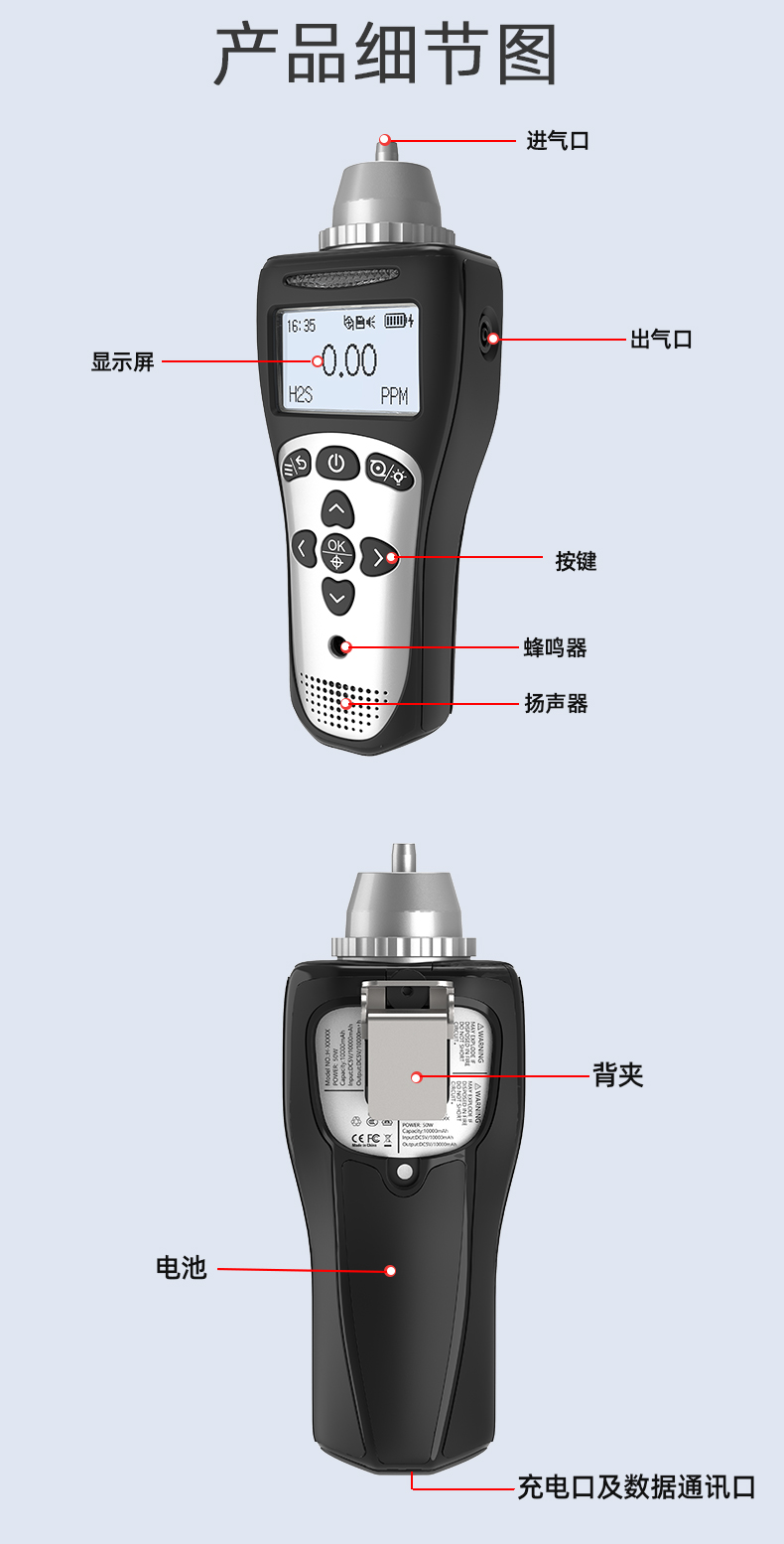 ★內(nèi)置泵吸式測(cè)量,可切換為擴(kuò)散式、擴(kuò)散+泵吸式檢測(cè)方式。