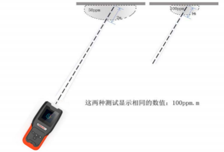 當在較遠距離發(fā)現(xiàn)有氣體泄漏指示時,應將儀器移動到距被測目標較近的位置進行仔細檢測,以得 到更精確的檢測結果。