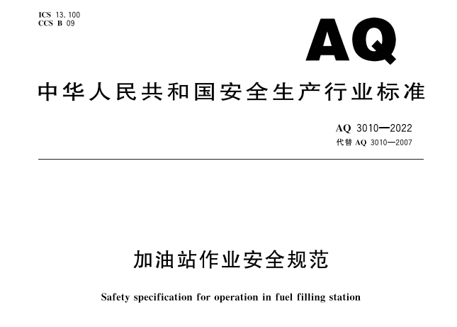 3010-2022《加油站作業(yè)安全規(guī)范》,并計(jì)劃于2023年4月1日起正式施行。
